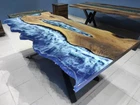 Epoxy Ocean Waves Console or Coffee Table Top with Decorative Design