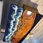 Epoxy Resin Ocean Wave Dining Table Handmade Acacia Wood Home Decor
