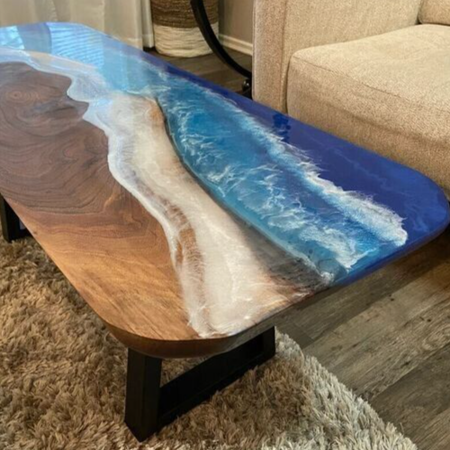 Epoxy Resin Blue Island Flow Wooden Dining Coffee or End Table