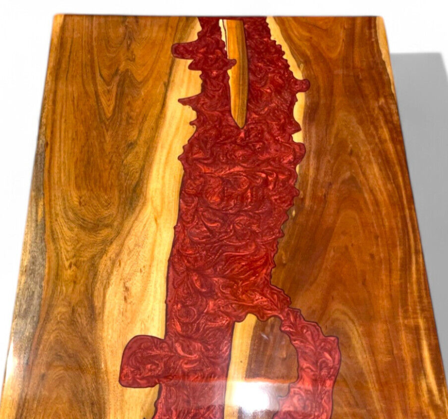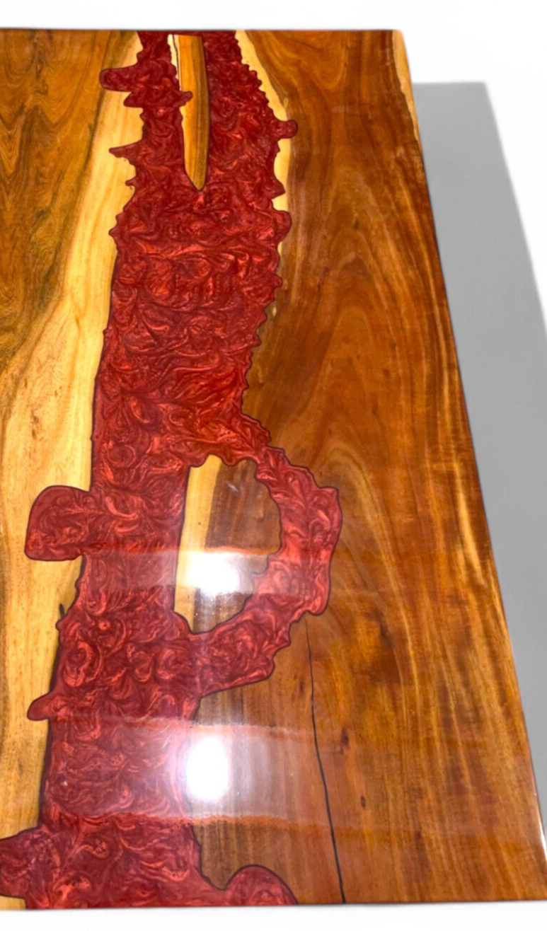Table Size: 48"x24" Inch Our epoxy tables are custom-made, and we strive to use the same type of wood as depicted in our advertising pictures. However, it is not always possible to find an exact match, which may result in slight variations in the epoxy color and wood grain pattern. It's important to keep in mind that the table you receive may not be an exact replica of the advertising picture. We ensure that our clients are informed of every step of the process, from the selection of the wood to the final finish of the table. We keep our clients up-to-date throughout the process to ensure transparency and avoid any misunderstandings. Additionally, our price includes air delivery right to your doorstep via DHL/Fedex/UPS and insurance protection. Please note that you may be responsible for paying any applicable tax and duty on delivery. If you have any concerns or doubts, we highly recommend addressing them before making a purchase. Clearing any doubts beforehand will help avoid any issues and ensure a smooth buying process. It's important to note that any accessories depicted in the advertising images, such as knives, chairs, or lighting, are not included with the product and are only used for photography purposes. Additionally, please keep in mind that the price of the product does not include any type of legs. If you would like legs included, we can provide them for an additional cost. We recommend addressing any questions or concerns before making a purchase to avoid any misunderstandings.