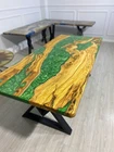 Epoxy Resin Table, Custom Emerald Green Table, Epoxy River Dining Table Top Deco