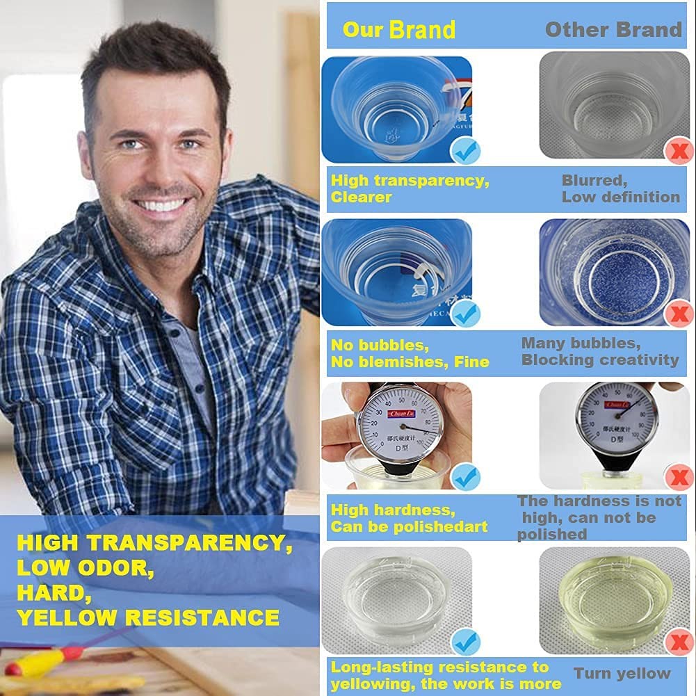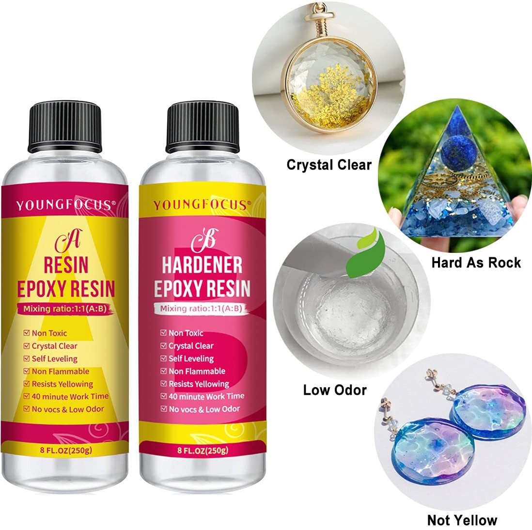 Casting and Coating Epoxy Resin Our 1:1 epoxy system provides you with a protective glass-like finish on any surface. Our epoxy goes on in thick pours that self-level. Everything about our epoxy makes it easy to get an alluring clear finish quickly and easily. We proudly provide you a formula that allows you to bring you projects to life with no unnecessary stress! đăEPOXY RESIN CRYSTAL CLEAR & SELF LEVELă Our premium professional grade epoxy resin goes on smooth and dries evenly to eliminate crawling, trickling, self leveling, craters and bubbles. High gloss formula cures a perfectly crystal clear finish, hard as a rock. to resist scratch and yellowing. Excellent color stability could protect your art work. Try it!!! đăRESIN KIT FOR BEGINNERS EASY TO USEăYou will get epoxy resin kit: 8oz casting epoxy resin + 8oz clear coating, and detailed instructions. You just mix the resin A and hardener B with 1:1 volume ratio then it's ready to use. You also enjoy the longer 30 - 40 minute working time that gives more time for the creative process such mix with pigments. Very easy cast resin epoxy with instructions is perfect for starter beginner and professional artist adult. đăRIGOROUS TESTING SAFE AND ODORLESS ăRigorous testing was done. Our epoxy resin starter kit is straightforward and easy to apply - even as a first-time novice or beginner hobbyist. Our epoxy resin is a perfect match for craft pigments like most mica and glow pigments. Everything about our art resin makes it easy to get clear finish quickly and easily. Crystal clear and Non-Toxic! đăPERFECT MULTI APPLICATIONăOur epoxy resin fit for you to creative artwork for your house or as a gift for friends. The epoxy resin kit is ideal for use in DIY resin art, jewelry making, river tables, crystal clear coating, casting, christmas decoration or other creative projects. Great choice for you to create customized works of one-of-a-kind artisan craftsmanship! đăEXCELLENT CUSTOMER SERVICEă100% MONEY BACK & SERVICE. For any reason you are not 100% happy with the epoxy resin, please feel free to Contact Us. We will respond to you within 24 hours and assist you with a refund at no additional cost.
