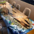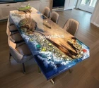Epoxy River Dining Table with Ocean Wave Design Handmade Wooden Countertop for Hallway Decor