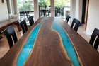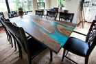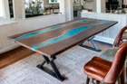 Add a unique touch to your dining room with this stunning epoxy dining table. The table features a beautiful blue epoxy finish that creates a mesmerizing river effect. The rectangular table is made of high-quality Acacia wood and measures 72 inches in length and 36 inches in width, providing ample space for your family and guests to enjoy their meals together. The table stands at a comfortable height of 30 inches, making it perfect for dining. This piece of furniture is not only functional but also a work of art that will add a touch of elegance and sophistication to your home. Place it in your dining room to create a cozy and inviting atmosphere. The table is perfect for any style of home decor and will complement your existing furniture effortlessly. The table displayed in the photo is already been sold, we make similar for you , due to the nature of wood a little variations can come. Buyers are liable for custom and import taxes that may apply in their country.