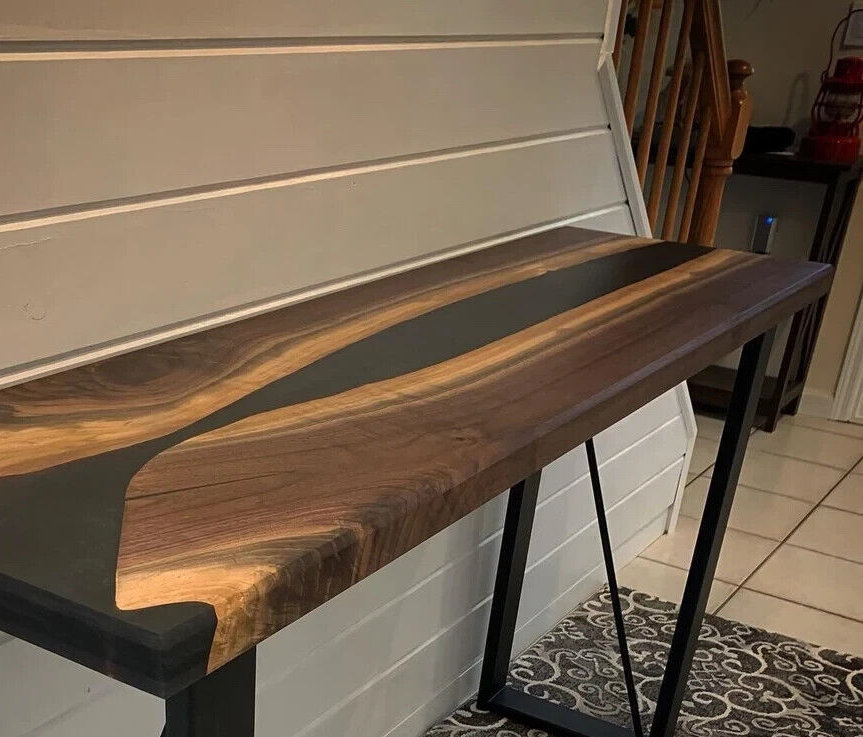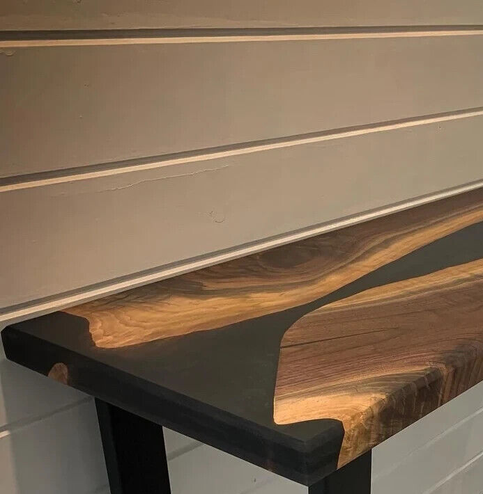 love the table, a true work of art. Price to quality relationship very high. There are a lot of wanna bes out there, but few true craftsmen in this space, and they are craftsmen. Lots of back and forth to get what we desired.. nonlinear edges, curvy river, branch circles within wood, blue resin covering only 20% of table overall, specific length and width, leg style. Shipped via air very quickly too. Two thumbs up!