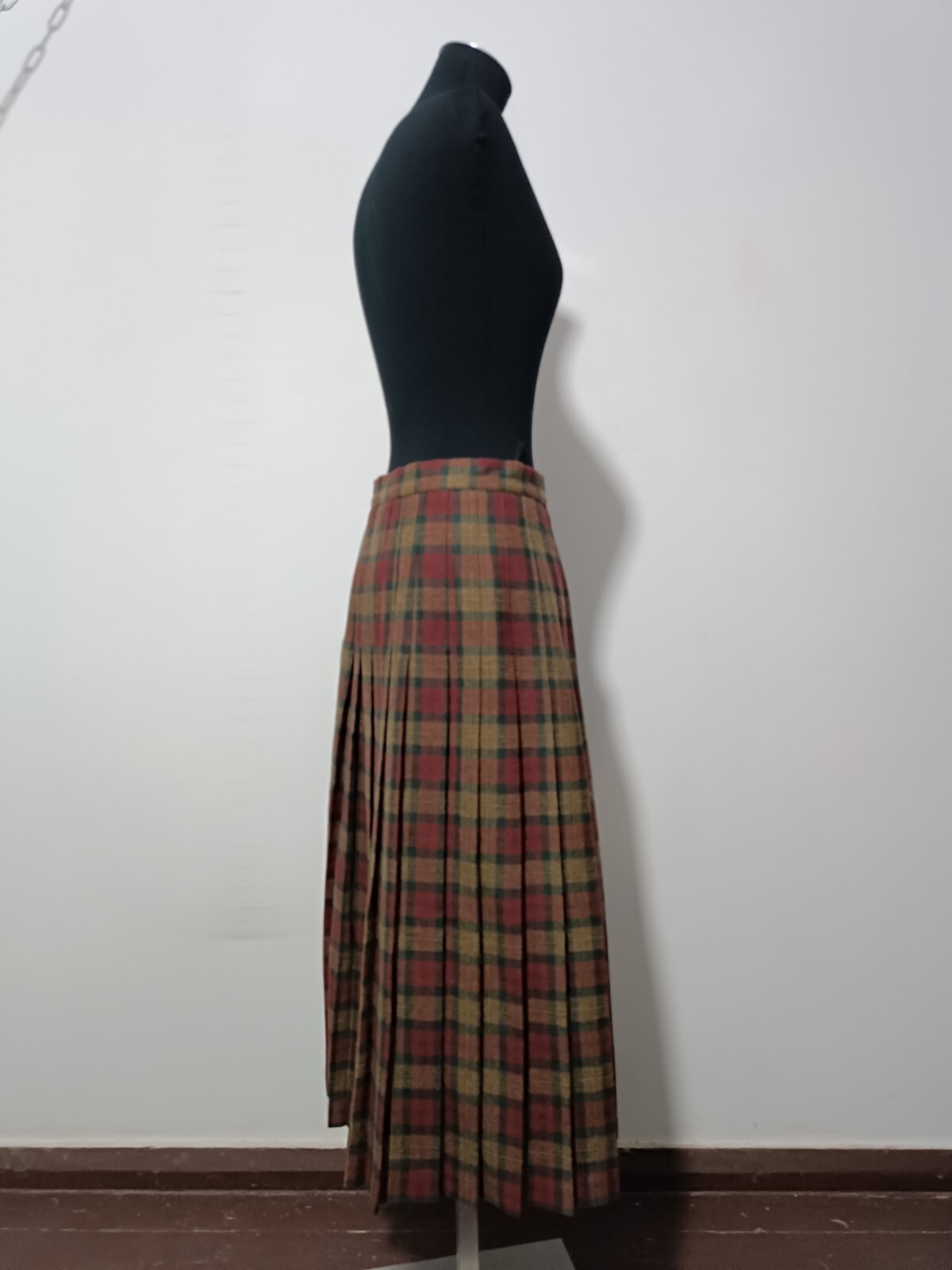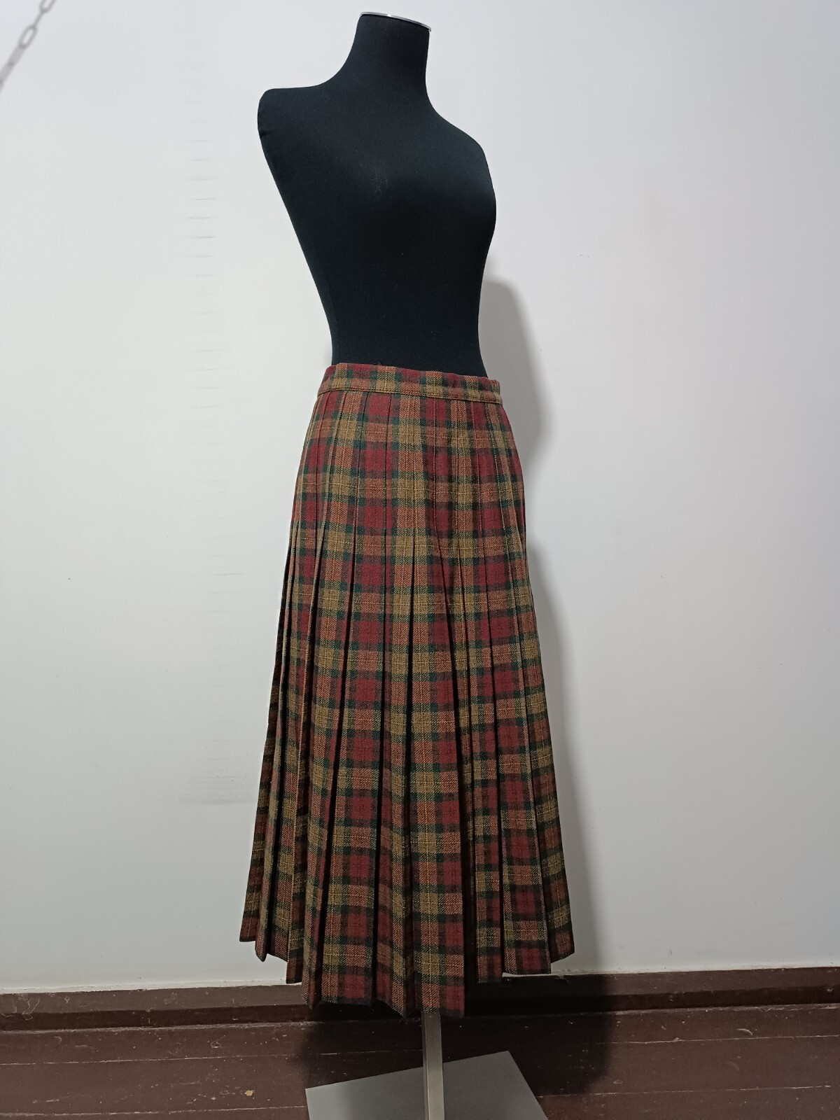 length 80 cm/31,5" width at waist half girth 36 cm/14" width at hips 72 cm/28" 100% virgin wool with quality mark, lining 100% polyester Made in Scotland.