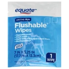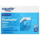 About this item Product details Equate Fresh Scent Flushable Wipe Singles are better than dry bath tissue alone, especially when you are On-the-Run or traveling . Feel confident and refreshingly clean with these soft, fresh-scented flushable wipes. These flushable wipes are hypoallergenic and free of alcohol, phenoxyethanol, and parabens. They're also infused with vitamin E and aloe extract. This product contains 30 individually wrapped flushable wipes in an easy-to-use, resealable closure which keeps the wipes moist and allows for easy access whenever you need them. Experience a new level of clean with these Equate Fresh Scent Flushable Wipe Singles. Making the right health decisions can be challenging. With a complete range of products and simple solutions, Equate allows you to take care of your family with confidence. 30 individually wrapped flushable wipes Convenient for On-the-Run and travel Fresh Scent Hypoallergenic Alcohol, phenoxyethanol and paraben free Contains aloe and vitamin E Made with 100% plant-based fibers Meets INDA flushable product guidelines (See disposal instructions) Great for the entire family