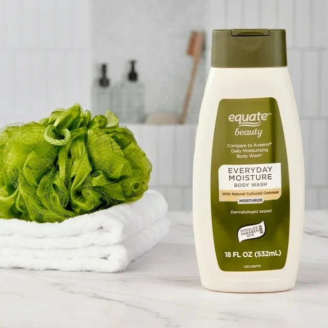 Fight off dry and cracking skin in the shower or bath with Equate Body Wash, Everyday Moisture. This bottle includes natural colloidal oatmeal, which moisturizes and protects dry skin and helps bring out the beauty within. It has 18 fl oz of lotion, so there is plenty for continued use and beauty. This exquisite Equate moisturizing body wash has been dermatologist tested, so it can be trusted by the user. It is also completely free from dye, paraben and soap for even more benefit for the person enjoying the application. The everyday body wash is the ideal formula for daily use in the shower or bathtub, and every member of the household will enjoy the way it leaves skin feeling soft, smooth and healthy. Just lather and rinse with a washcloth or pouf and leave the shower feeling amazing. Give your skin the natural, moisturized feeling it deserves with Equate Everyday Moisture Body Wash. Making the right health decisions can be challenging. With a complete range of products and simple solutions, Equate allows you to take care of your family with confidence. Equate Everyday Moisture Body Wash, 18 fl oz Everyday moisture body wash with natural colloidal oatmeal Equate moisturizing body wash is dermatologist tested Free of dye, paraben and soap 18 fl oz bottle Easy to use; just lather and rinse with a washcloth or pouf Flip top