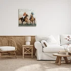 Stretched Canvas Sizes Include Standard: 17 x 1.5 x 17 Large: 24 x 1.5 x 24 X-Large: 30 x 1.5 x 30 Oversized: 36 x 1.5 x 36 Wall Art is Ready to Hang with Hardware Free Hanging. No installation required. For Easy Set Up Lean or Layer Artwork on Shelf or Against Wall. Our stretched canvas is created with the highest standards. We use only the highest quality inks and canvas on our in house Mimaki printers, and then hand cut and stretch each piece over a 1.5 inch thick wooden frame for hanging. Made In USA. Artwork Relates To: Person, Animal, Horse, Mammal, Painting, Nature, Polo, Sport, Equestrian Design by Ziwei Li