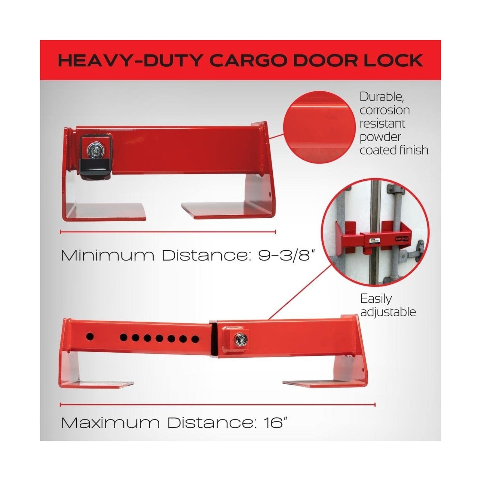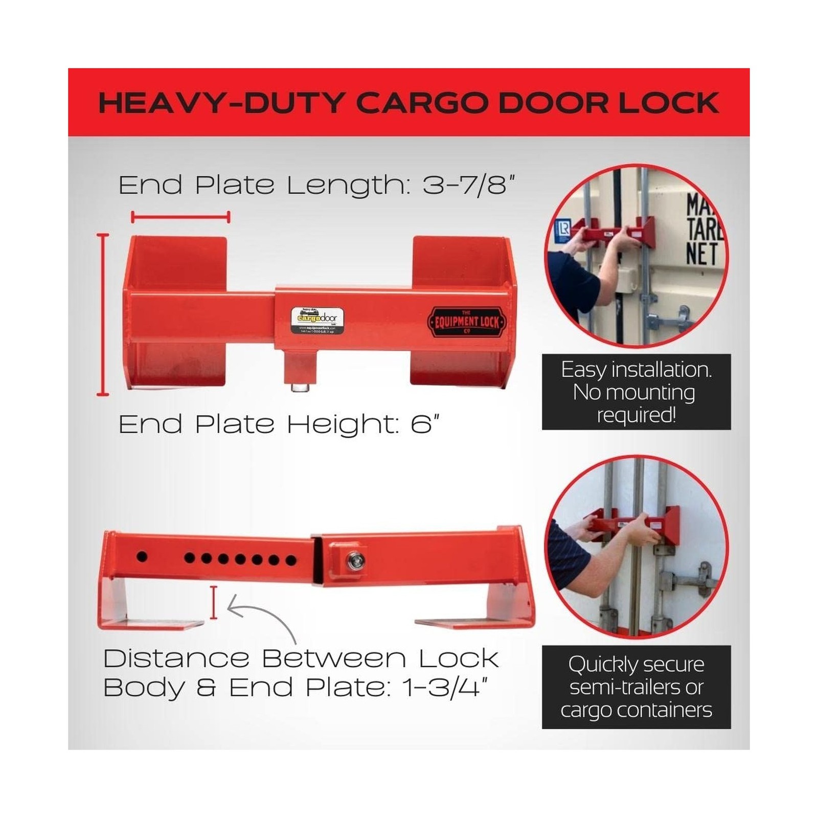 Equipment Lock Heavy Duty Cargo Door Lock - Powder Coated Steel Shipping Container & Semi Trailer Door Security - Semi Truck Accessories (Keyed Differently) Description The Equipment Lock HDCDL steel cargo door lock is an adjustable-width, keyed lock made of steel to secure both doors of a semi-trailer or storage container. It is adjustable to fit doors with vertical locking bars from 9-3/4" to 16" apart. The lock is made of two square steel tubes, one 2" and one 2-1/2", with 3/16" thick walls, that fit together. The steel is powder- coated orange for high visibility and to help resist corrosion. The lock weighs 13 lb. and has 6" tall, 3/16" thick steel plates that are perpendicular to the tubes at their ends, and flush against the cargo doors, for added support. The Equipment Lock Company manufactures crime prevention locks for the heavy equipment industry. The company, founded in 2003, is headquartered in Winchester, VA. Features: CONTAINER & SEMI TRUCK DOOR LOCK: The Heavy Duty Cargo Door Lock is our number one selling device. It fits vertical cargo door bars from 9 34-16 apart (extension kit available, sold separately), and is the ideal security solution for sea and construction site storage containers and over-the-road trucks. MAXIMUM SECURITY: This heavy duty door lock system is built to secure semi-trailers and sea containers by locking the innermost vertical locking bars together. It features a tamper-resistant tubular pin tumbler lock design for ultimate peace of mind while youre away. KEYED SECURITY LOCK: The built-in high security barrel lock system includes 2 keys. For more controlled access to your equipment, no code is kept on file with our keyed differently option. Each key is made unique to the individual lock. EASY OPERATION: No mounting required. Separate the two halves of the Cargo Door Lock, aligning them so the lock mechanism and holes are both facing downward, and install one half of the Cargo Door Lock on each doors locking bar. Slide the two halves together by inserting the smaller tube into the larger tube. Secure the Cargo Door Lock as tight as possible on both doors' locking arms and depress the locking button with key removed or turn dials. HIGH QUALITY: Distinguished by its signature red finish, every lock is protected by a steel-locking structure that can withstand thousands of pounds of force. But it doesnt stop there! Each device is powder coated before a series of quality assurance checks to ensure security and reliability. Product Details: Brand: THE EQUIPMENT LOCK COMPANY Special Feature: heavy Duty Lock Type: Combination Lock, Key Lock Item dimensions L x W x H: 10 x 7 x 5 inches Material: Alloy Steel Brand: THE EQUIPMENT LOCK COMPANY Special Feature: heavy Duty Lock Type: Combination Lock, Key Lock Item dimensions L x W x H: 10 x 7 x 5 inches Material: Alloy Steel Recommended Uses For Product: Security Style: Keyed Differently Color: Red Number of Pieces: 1 Finish Type: Powder Coated Included Components: 1 Controller Type: Hand Control Shape: Rectangular Control Method: Touch Model Name: HDCDL Manufacturer: The Equipment Lock Company Part Number: HDCDL Item Weight: 12.01 pounds Product Dimensions: 10 x 7 x 5 inches Item model number: HDCDL Is Discontinued By Manufacturer: No Size: Keyed Differently Finish: Powder Coated Item Package Quantity: 1 Special Features: heavy Duty Batteries Included?: No Batteries Required?: No Date First Available: July 20, 2011 Delivery We Do Not Ship Outside of the Continental US. Return Policy All items qualify for returns within 30 days of receipt. Buyer is responsible for return shipping on any item that is not damaged. Feedback We take our reputation seriously, we buy and sell online, so we understand the value of trust. If you are unsatisfied with your order, please contact us and we will work with you to resolve it to your satisfaction.