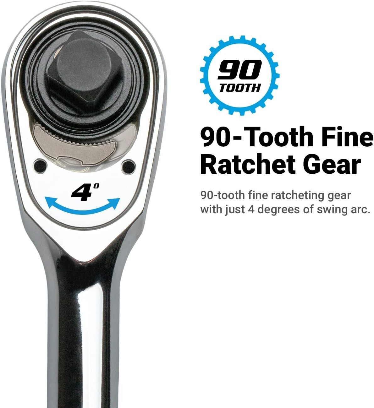Ergonomic 3/8" Drive Ratchet - 90-Tooth Gear and Polished Chrome Finish ‹ › ‹ › ‹ › ‹ › ‹ › ‹ › ‹ › ‹ › ‹ › Ergonomic 3/8" Drive Ratchet - 90-Tooth Gear with Polished Chrome Finish This exquisite ratchet combines superior performance with elegant design, making it an essential tool for any discerning craftsman. Key Features: 90-Tooth Fine Gear: Offers a mere 4 degrees swing arc, perfect for maneuvering in tight spaces. Single-Pawl Design: Provides an exceptionally smooth ratcheting mechanism, enabling fast and efficient work. Low Profile Head: Designed for tight spots, allowing you to work even in low-clearance environments. Extended Handle: Long handle for added leverage, giving you the confidence to tackle any project. Anti-Dust Design: Seals out dust and debris to protect gears and maintain lubrication for long-lasting performance. Dual Direction Ratcheting: Effortlessly switch directions with just a thumb flip for seamless operation. Ergonomic Grip: Soft contour handle ensures a comfortable and secure hold, reducing fatigue during prolonged use. Flawless MaxChrome Plating: Provides durability and corrosion resistance through meticulous polishing and protective chrome application. Specifications: 3/8 in. drive, boasting a length of 9.5 inches. Why Choose Our Ergonomic Ratchet? Elevate your toolbox with the Ergonomic 3/8" Drive Ratchet, which not only meets but exceeds the expectations of professionals and enthusiasts alike. The precision engineering ensures that you can work swiftly and efficiently, even in the most challenging environments. Invest in a tool that promises not just functionality, but also durability and an effortless user experience. Unleash your potential and achieve perfection in every project with this fine-tuned instrument. Shipping Free & Fast Shipping - We offer free shipping to most of the USA with a normal delivery time of 3-7 days. However, due to the current situation, additional delivery time (up to 3 weeks) may be required for some items. Alternative Carriers - We may use alternative carriers (e.g. USPS, FedEx, UPS, etc.) to ensure your package arrives safely and on time. Due to the use of multiple carriers, we are unable to provide a tracking number automatically. Handling Time - Orders are processed and shipped within 1-2 business days of receiving cleared payment. Shipping Restrictions - Shipping to Alaska, Hawaii, Puerto Rico, Guam, and other US territories may incur shipping charges or delivery restrictions. Please contact us before ordering, or your order can be refunded/cancelled. State Restrictions - There may be restrictions based on your state of purchase. For example, certain items may not be shipped to California due to state regulations. Contact for Tracking Updates - If you require tracking updates or have any concerns about the delivery of your order, please feel free to contact us, and we will be happy to assist you. Return 30-Day Hassle-Free Returns - We want you to be completely satisfied with your purchase. If you are not, you can return the item within 30 days of receiving it for a full refund or exchange. Easy Return Process - To start a return, simply contact us and we will provide you with a prepaid return shipping label and detailed instructions. Restocking Fee - There are no restocking fees for returns. However, the buyer is responsible for return shipping costs if the return is not due to a seller's error. Refund Processing Time - Refunds will be processed within 5 business days of receiving the returned item in its condition. Payment We accept all major credit cards, PayPal, and Apple Pay for your convenience. Your payment information is secure and encrypted to ensure a safe and seamless transaction. Please complete your payment within 3 days of purchase to avoid any delays in shipping. Feedback Your feedback is extremely important to us. We strive to provide the best products and customer service possible. If you are satisfied with your purchase, please take a moment to leave us a positive review. If you have any concerns or issues with your order, please contact us before leaving negative feedback. We are committed to resolving any problems and ensuring your satisfaction. Contact Us If you have any questions or concerns, please feel free to out to our customer support team. You can contact us through the eBay messaging system. We are available Monday to Friday, 9:00 am to 5:00 pm EST, and we will do our best to respond to your inquiry within 24 hours. Buy it now and enjoy a pleasant shopping experience! Manufacturer Part Number: 3/8 inch drive ratchet Number of Pieces: 1 Unit Quantity: 1 Type: Standard Ratchet Drive Size: 3/8in.