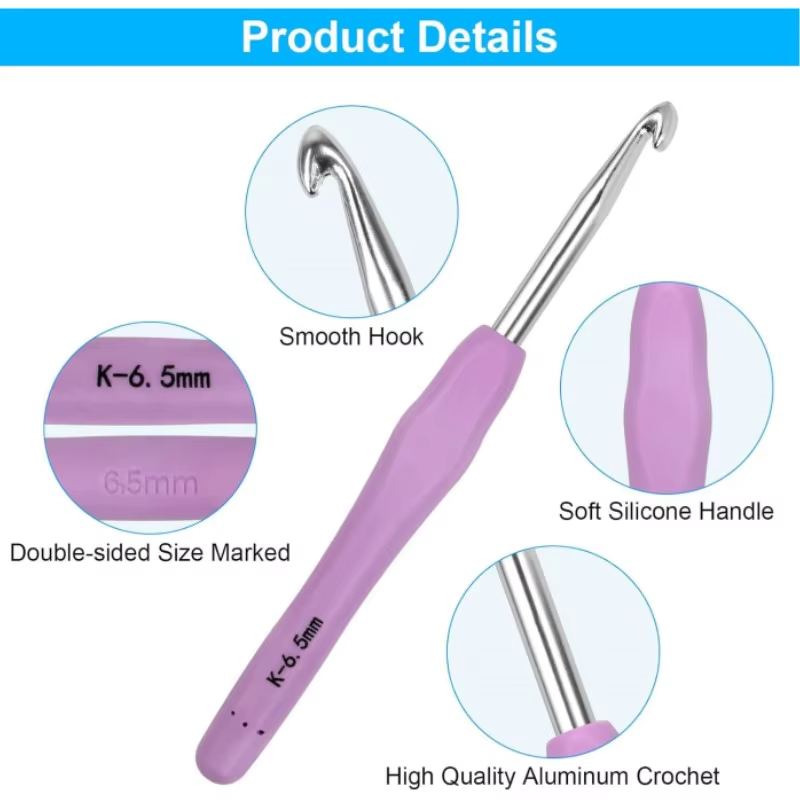 ✨ Ergonomic Crochet Hook Set – Perfect for Beginners & Arthritic Hands Whether you’re a beginner or an experienced crocheter, this complete crochet hook kit provides everything you need for smooth, comfortable, and efficient crocheting. With 12 sizes ranging from 2mm to 8mm , it covers all yarn types and project styles—from blankets and clothing to amigurumi and decorative crafts. 🌟 Key Features 🎨 Complete 12-Size Crochet Hook Set Includes hook sizes 2.0mm to 8.0mm , giving you the versatility to handle lightweight, medium, and bulky yarns. A perfect set for all your knitting and crochet projects. 💎 Premium Aluminum Hook Heads Made from high-quality aluminum , the hooks are durable, smooth, and resistant to bending. Each hook tip glides effortlessly through yarn without catching or snagging. 🧶 Ergonomic Soft Silicone Handles Designed with comfort in mind , the soft, non-slip grips help reduce hand fatigue—ideal for long projects or users with arthritic hands, joint pain, or weak grip strength . The hook is firmly embedded into the handle for extra durability. ✨ Smooth & Longer Hook Design The longer aluminum hook offers extra looping space , making it easier to work on complex patterns. Smooth edges ensure faster and more efficient crocheting. 🎒 Compact Storage Case Included Comes with a blue portable storage case to keep all hooks organized, clean, and easy to carry. Perfect for travel, craft classes, or everyday use. 📦 Package Includes Aluminum Crochet Hooks Sizes: 2.0mm–8.0mm 1 × Portable Storage Case Packing Content 51 pcs Crochet Hooks Set 12 Pieces Crochet Hooks: 2.0 mm crochet hook x 1pcs, 2.5 mm crochet hook x 1pcs 3 mm crochet hook x 1pcs, 3.5 mm crochet hook x 1pcs 4mm crochet hooks x 1pcs, 4.5 mm crochet hook x 1pcs 5 mm crochet hook x 1pcs, 5.5 mm crochet hook x 1pcs 6 mm crochet hook x 1pcs, 6.5 mm crochet hook x 1pcs 7 mm crochet hook x 1pcs, 8 mm crochet hook x 1pcs Tipps:The length of the crochet hooks is extended length: 15-15.5cm Other Accessories: Stitch markers for crocheting x 25 pcs Crochet rings for crocheting with cutter x 1 pcs Knitting needles set x 1 set (9 needles) Scissors x1 pcs Row counter x1 pcs Measuring tape x1 pcs Blue crochet hook case x 1 pcs 27 pcs Crochet Hooks Set 5 Pieces Crochet Hooks: 4 mm crochet hooks x 1pcs, 5 mm crochet hook x 1pcs, 6 mm crochet hook x 1pcs, 7 mm crochet hook x 1pcs, 8 mm crochet hook x 1pcs Tipps:The length of the crochet hooks is regular length: 14cm Other Accessories: Stitch markers for crocheting x 10 pcs Knitting needles set x 1 set (9 needles) Bent tip darning needles x 2 pcs Measuring tape x1 pcs 31 pcs Crochet Hooks Set 11 Pieces Crochet Hooks: 2.0 mm crochet hook x 1pcs, 2.5 mm crochet hook x 1pcs 3 mm crochet hook x 1pcs, 3.5 mm crochet hook x 1pcs 4mm crochet hooks x 1pcs, 4.5 mm crochet hook x 1pcs 5 mm crochet hook x 1pcs, 5.5 mm crochet hook x 1pcs 6 mm crochet hook x 1pcs, 7 mm crochet hook x 1pcs, 8 mm crochet hook x 1pcs Tipps:The length of the crochet hooks is regular length: 14cm Other Accessories: Stitch markers for crocheting x 10 pcs Bent tip darning needles x 6 pcs Row counter x1 pcs Measuring tape x1 pcs Blue crochet hook case x 1 pcs 12 Sizes Crochet Hook Set Enjoy the crocheting time For beginners and crochet lovers