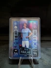 The product is a limited edition Erling Haaland 2022-23 Topps Match Attax Blue Burst trading card featuring the soccer player. It is part of the 2022-23 Topps set, with Topps autograph authentication. The card is a sports trading card with a blue parallel variety, manufactured by Topps in 2023.