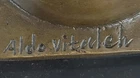 Cupid Eros & Psyche Angelic Romantic Lovers Hot Cast Bronze Sculpture Statue Cupid Eros & Psyche Angelic Romantic Lovers Hot Cast Bronze Sculpture Statue Condition: This Sculpture Is in Perfect Condition Bronze Dimensions with Marble Base: Height 21" X Width 7" Marble Dimensions:7" X 6" Height Without Base:20" Weight:17 LBS Inventory:69Ds3137996 Original or Reproduction: Original Transport yourself to a moment of serenity and grace with this evocative bronze sculpture capturing a couple lost in the winds of love. As the world fades away, the pair is swept up in an uncontrollable storm of emotion, their connection palpable. The female figure wears a long, slim-fitting dress that gracefully outlines her body, while the male figure is nude, with the whisps of the cloud cleverly covering his privates. The couple's eyes lock in a deep gaze, sharing a slight smile as they dance the night away with great poise and posture. Their love is a spectacle, drawing attention from everyone surrounding them, creating a sense of envy among the crowd. Crafted with meticulous detail, this sculpture was cast using the "Lost Wax Method," a technique that captures the intricacies of the artist's vision. The brown patina finish adds warmth and depth to the artwork, enhancing its overall beauty. Mounted on a sturdy marble base, the sculpture stands as a testament to the skill and creativity of the artist, Aldo Vitaleh. The signature on the piece adds authenticity, making it a valuable and captivating addition to any art collection. Let this enchanting sculpture become a focal point, telling a timeless tale of love and connection.