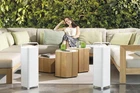 This is the Escape speaker P9. Brand new! This speaker retails in the UK at £1200 inc VAT. This is a bargain at £600 It is an App controlled Bluetooth/networked/cabled speaker with 360 degree sound output. It can be upgraded via a module (not sold here) to Airplay and Roon. It is water resistant with a huge battery life of 9 hours at full charge. The sound from this speaker is amazing. Think Hi-Fi sound for BBQ. The Escape ® P9 delivers superior sound quality thanks to five high-quality speakers equipped with an aluminum dust cap, optimized deep polypropylene (PP) cone, linear flat spider and a vented voice coil driven by a powerful magnet. The 20 cm (8-inch) subwoofer features a custom-designed composite fiberglass-reinforced basket to support the oversized magnet. The linear flat spider and vented voice coil ensure deep, powerful and accurate reproduction of the lowest frequencies. Two powerful 24-BIT DSP processors control the digital signal processing and various equalizer algorithms. The built-in audiophile amplifier with an output of 100 Watts RMS and frequency response of 20Hz-20KHz is fully tuned to the 5 speakers. The advanced bass management offers music lovers the ultimate audio sensation.