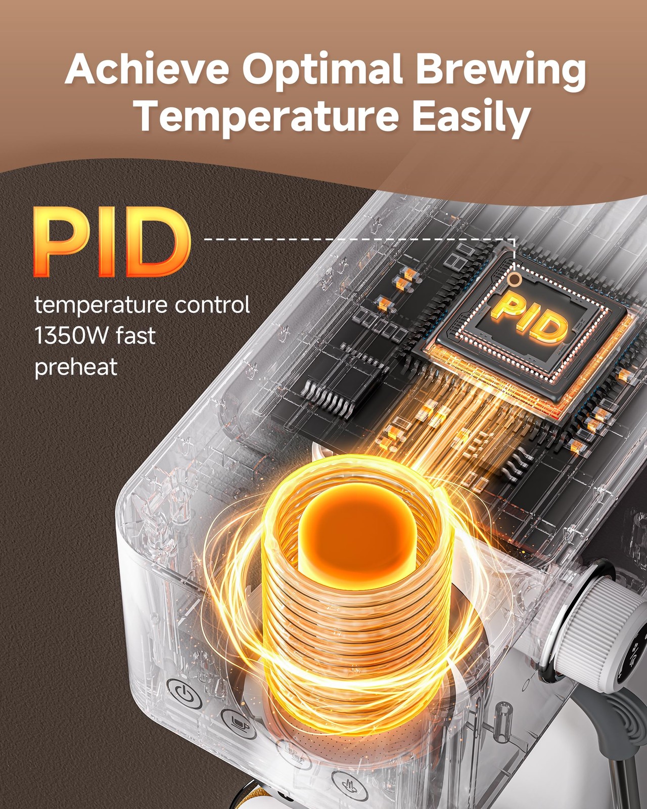 Professional 20 Bar Pressure System - Italian pump delivers 20Bar high pressure for richer crema and bolder flavor than low-pressure machines, perfect for crafting café-quality espresso at home 1350W Efficient Heating - Powerful preheating system heats in just 30 seconds while warming cups to preserve optimal temperature and flavor. With PID temperature control system controls the water temperature to a precise +/- 2°C, ensuring optimal espresso extraction Powerful Steam Milk Frother - Stainless steel milk frothing system supports 360° free rotation, powerful steam produces fine and dense milk froth with high water content, perfect for lattes/cappuccinos and other fancy coffees One-Touch Easy Operation - Intuitive button design makes it easy to get started even if you've never made coffee before. You can choose between single/double cup extraction or customise the extraction time to precisely control the strength of your espresso
