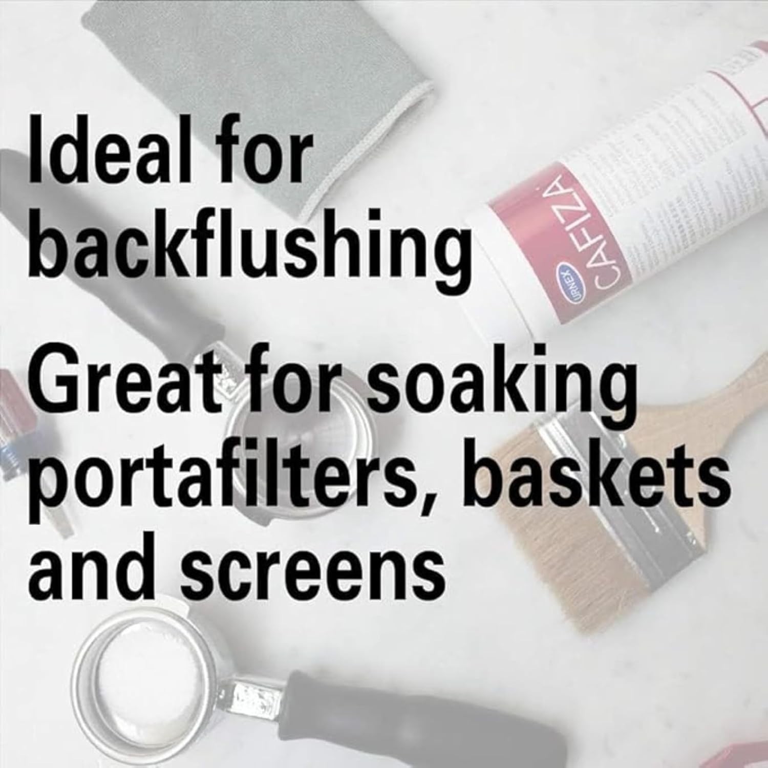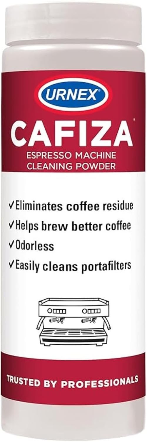 Espresso Machine Cleaning Powder - 566 grams - Cafiza Professional Espresso Machine Cleaner Eliminates coffee residue and oils from espresso machine group heads, valves and lines Specially formulated to clean heavily soiled equipment in a professional setting Powder format allows for easy and controlled dosing Recommended for use as part of a daily backflush regimen Organic Materials Review Institute (OMRI) listed and NSF certified Cafiza Espresso Machine Cleaner Powder is an integral part of the daily maintenance routine for espresso machines. Specifically formulated for effective use in the back flush cleaning process, Cafiza is designed to combine maximum solubility and cleaning power with easy rinsability. Cafiza is recommended for use with a wide-range of traditional espresso machines and is NSF certified for metal compatibility and safety.
