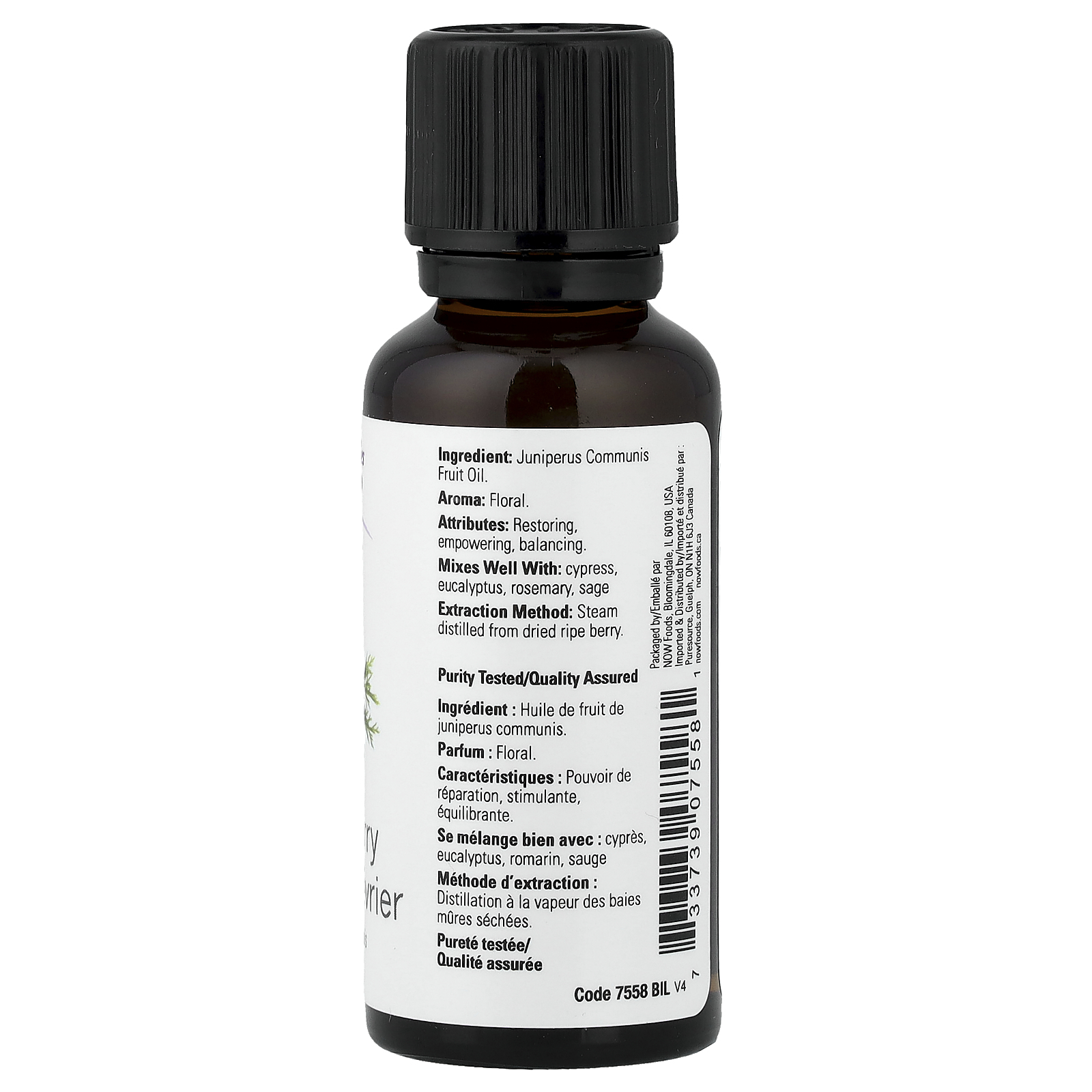 100% Pure Juniperus Communis Purity Tested/Quality Assured Aroma: Floral. Attributes: Restoring, empowering, balancing. Extraction method: Steam distilled from dried ripe berry. Our eBay Store About Us Contact Us Add to Favorite Sellers Expiration Date: 07/01/2028 Disclaimer: Our receiving department does its best to verify and then enter the correct expiration dates for all incoming products. However, discrepancies do occur from time to time. This being said, the exceptionally high turnover at iHerb ensures that our inventory is among the freshest in the industry. NOW Foods, Essential Oils, Juniper Berry, 1 fl oz (30 ml) DESCRIPTION: 100% Pure Juniperus Communis Purity Tested/Quality Assured Aroma: Floral. Attributes: Restoring, empowering, balancing. Extraction method: Steam distilled from dried ripe berry. SUGGESTED USE: Mixes well with: Cypress Eucalyptus Rosemary Sage Use in a diffuser for aromatic attributes. For all other uses, carefully dilute with a carrier such as almond or grapeseed oil prior to use. Please consult a professional reference source for suggested dilution ratios and recipes. INGREDIENTS: Juniperus communis fruit oil. WARNINGS: Natural essential oils are highly concentrated and should be used with care. Keep out of reach of children. Avoid contact with eyes. If pregnant or nursing, consult your healthcare practitioner before using. Not for internal use.