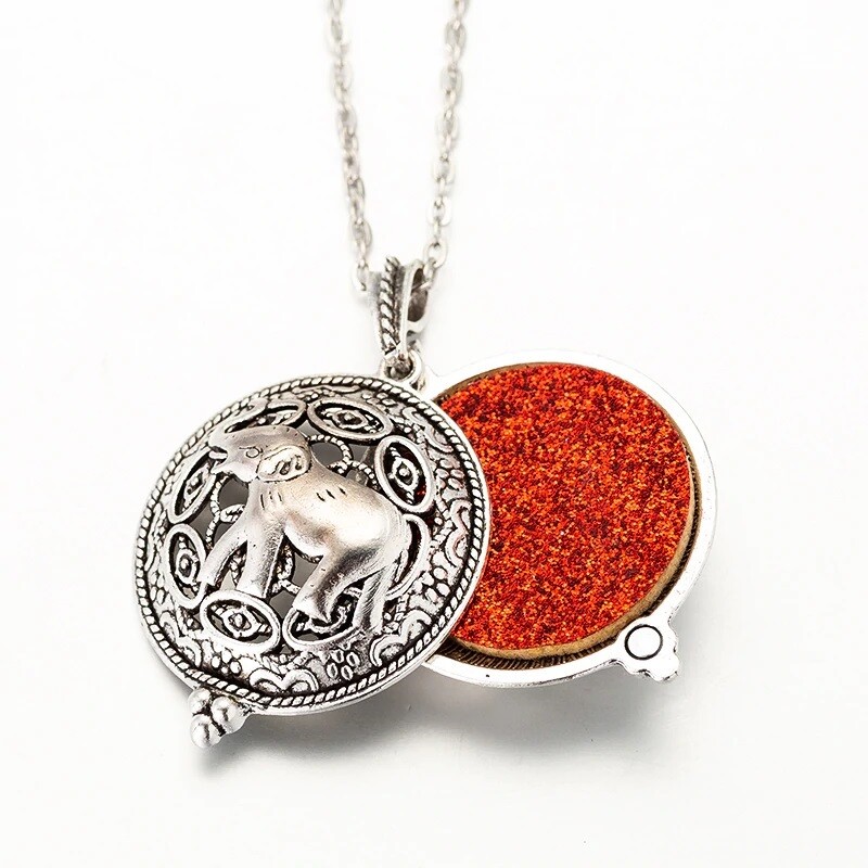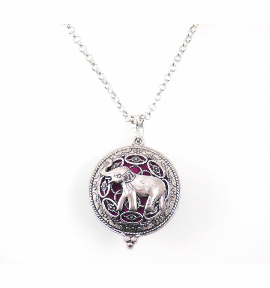 This is a beautiful quality handmade vintage necklace featuring a silver tone Indian elephant locket/essential oil diffuser pendant. The essential oil diffuser locket is easy to use. Just open the locket and put 1-2 drops of your favorite essential oil on the felt pad and then close. Now you have a stylish way to enjoy your favorite oils or perfume all day long. ♥ Necklace comes with 2 felt pads. Random colors will be sent. ♥ The pendant has an antique silver finish ♥ MATERIALS Chain : s925 Silver / Stainless Steel Pendant : Copper, Magnet Disc : Stainless Steel ♥ MEASUREMENT Chain : 60 cm long (23-5/8 in) Pendant : 4.3 cm * 3.5 cm (1-11/16 in * 1-3/8 in) Initial Disc : 1.2 cm diameter (15/32 in) ♥ CARE Keep it away from water and sweat ♥ Packaging This item will be delivered in a very nice organza gift bag.