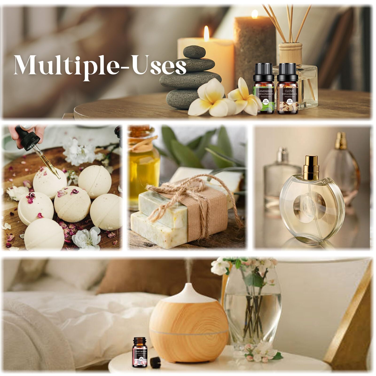 Essential Oils Set - 32x5ml Pure Aromatherapy Essential Oils Kit for Diffuser, ✅【32x5ml Essential Oils Set】This gift set includes some of the Most Popular and in-demand Essential Oils - Lavender, Sweet Orange, Tea Tree, Lemongrass, Peppermint, Bergamot, Frankincense, Rosemary, Lemon, Cinnamon, Geranium, Patchouli, Clove, Vanilla, Jasmine, Sandalwood, Ylang-Ylang, Grapefruit, Sage, Eucalyptus, Chamomile, Rose, Cherry Blossom, Ginger, Pine, Thyme, Oregano, Basil, Neroli, Black Pepper, White Tea, Gardenia oil. ✅【100% Pure Essential Oils】No Additives, Fillers, Bases or Carriers Added. Our premium essential oils are highly concentrated liquid derived from plants' flowers, leaves or other parts; which will provide you with a pure and pleasant aroma. The scents of essential oils are extremely rich, complex and long lasting. ✅【Multi-Use】Our essential oils always adopt rigorous quality control standards. Simply add a few drops to any aromatherapy diffuser and fill your entire room with that aroma. And suitable for humidifier, aromatherapy, steam inhalations, hair or skin care, massage, bath, saunas, air freshening, home fragrance (bedroom, living room, bathroom, study room), office (workstation, conference room), yoga room and spa, etc. ✅【DIY Home Fragrance】Our essential oils are suitable for anything that you want to add scents to, like candle/soap making or to enhance shampoos, lotions, creams, bath bombs and etc. The scents are extremely rich, complex and long-lasting. ✅【Ideal Gift Set】A perfect gift set for any occasion. This essential oils set comes with elegant packaging, the perfect gift for your lover, friends, Birthdays, Anniversaries, Valentine’s Day, Father's Day, Mother's Day, Christmas, New Year and more. ‼️【Customer Service】If you have any issues or suggestions for our essential oils, please feel free to contact us on Amazon. We will be happy to replace it. Essential Oils Set Shipping We offer FREE shipping on all orders! We ship within Three business days of payment, usually sooner. We use a selection of shipping services such as UPS, FedEx, USPS etc. We only ship to the lower 48 states, no APO/FPO addresses or PO Boxes allowed. Local pickups and combined shipping options are not provided at this time. Return You can return a product for up to 30 days from the date you purchased it. Any product you return must be in the same condition you received it and in the original packaging. Please keep the receipt. Payment We accept payment by any of the following methods: PayPal Please pay as soon as possible after winning an auction, as that will allow us to post your item to you sooner! Feedback Customer satisfaction is very important to us. If you have any problem with your order, please contact us and we will do our best to make you satisfied. Contact Us If you have any queries, please contact us via ebay. We usually respond within 24 hours on weekdays. Please visit our eBay store to check out other items for sale! Thank you for shopping at our store.