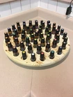 These are hand crafted and are capable of holding 56 bottles of 15ml or 5ml or some older square bottles or a combination of the three. Each one is UNFINISHED and in raw wood form.Each one has an extra large eleven inch base for stability and is 18 inches in diameter. These units are stackable up to 3 units tall to accommodate larger oil collections. Each unit is unique in wood grain and craftsmanship so no two will be exactly alike. Sale does not include oils or multiple units. Returns accepted only in original shipping packaging and undamaged.