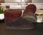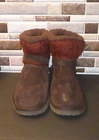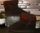 These Muk Luks boots are designed for women in size 8 with a cozy brown faux fur lining and insulated with 3M Thinsulate for warmth during winter. The booties feature a round toe, pull-on closure, and faux suede upper material with faux fur accents on the cuff and button details. The ankle shaft style makes them versatile for travel, casual wear, or activewear, while the flat heel and medium calf width provide comfort and style. Perfect for outdoor adventures with a bohemian or equestrian theme.