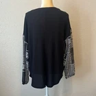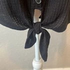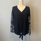 Est 1946 Black Tie Front Floral Sleeve Button Down Blouse. Size M true to size. In excellent condition. No holes, stains, or missing buttons. Measurements: Length 25” Pit to pit 23”