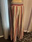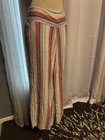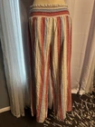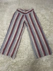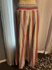 Elevate your wardrobe with these stylish and comfortable linen blend pants by Cato. These striped pull-on pants in size XL are perfect for any occasion, whether it's a day at the beach or a night out with friends. The pants feature a flat front and high-rise waist with stretch, ensuring comfort and flexibility throughout the day. Made from a soft and lightweight blend of rayon and linen, these pants are machine washable and easy to care for. The flared leg style and bloomer design add a touch of bohemian flair, while the multicolor stripes make them a versatile addition to any wardrobe. Perfect for the summer, fall, or spring, these pants are a must-have for any fashion-forward woman.