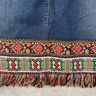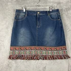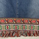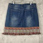 Est 1946 Denim Jeans Skirt 16W Ebroidered Ribbon With Fringe Boho Hippie 70s. Condition is Pre-owned. Shipped with USPS Ground Advantage.