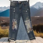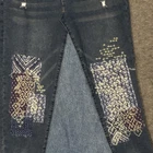 This Est 1946 denim skirt is a must-have for any fun-fashion woman. The blue skirt features a unique patchwork design with distressed and whiskered accents, colorful quilted patches, and a button closure, along with a raw hem to add a little edginess. The A-line style and mid-rise fit make it perfect for casual occasions, while the pockets add a touch of practicality. Made with a blend of polyester, spandex, and cotton, this skirt is both comfortable and durable. It is machine washable and perfect for winter, fall, and spring seasons. The skirt is available in size 6 and is ideal for those who love bohemian and prairiecore themes. Condition: Excellent (COLOR): Colors of products may vary in appearance slightly due to different lighting conditions and when viewed on different devices. Please review all photos carefully as they are part of the description. Any flaw can also be seen there. Zoom in and take a closer look at this product. Sizing: Sizing information may come from the item tag OR from the measurements we have taken. Pre-Owned clothing Items may measure different from tag size, due to shrinking or stretching through washing & wearing. For accurate sizing of pre-owned clothing, please use measurements provided. All measurements are approximate. Measurements for this item can be viewed in the photos. Return Policy: Your satisfaction is our Highest Priority! We offer you a free 60 day return or replacement on domestic purchases. Shipping Policy: We strive to offer the most cost effective method for your item. We combine shipping of your multiple item purchases when it saves you money on shipping rates. If you don’t see your preferred shipping method, please ask and we will see what we can do. Contact us: If you have any questions, please ask. We try our best to answer your questions immediately. Please ad us to your favorites list & check back often, as we list new items every single day! Tell a friend!! Thank You, FlippinRidiculous!