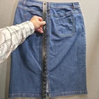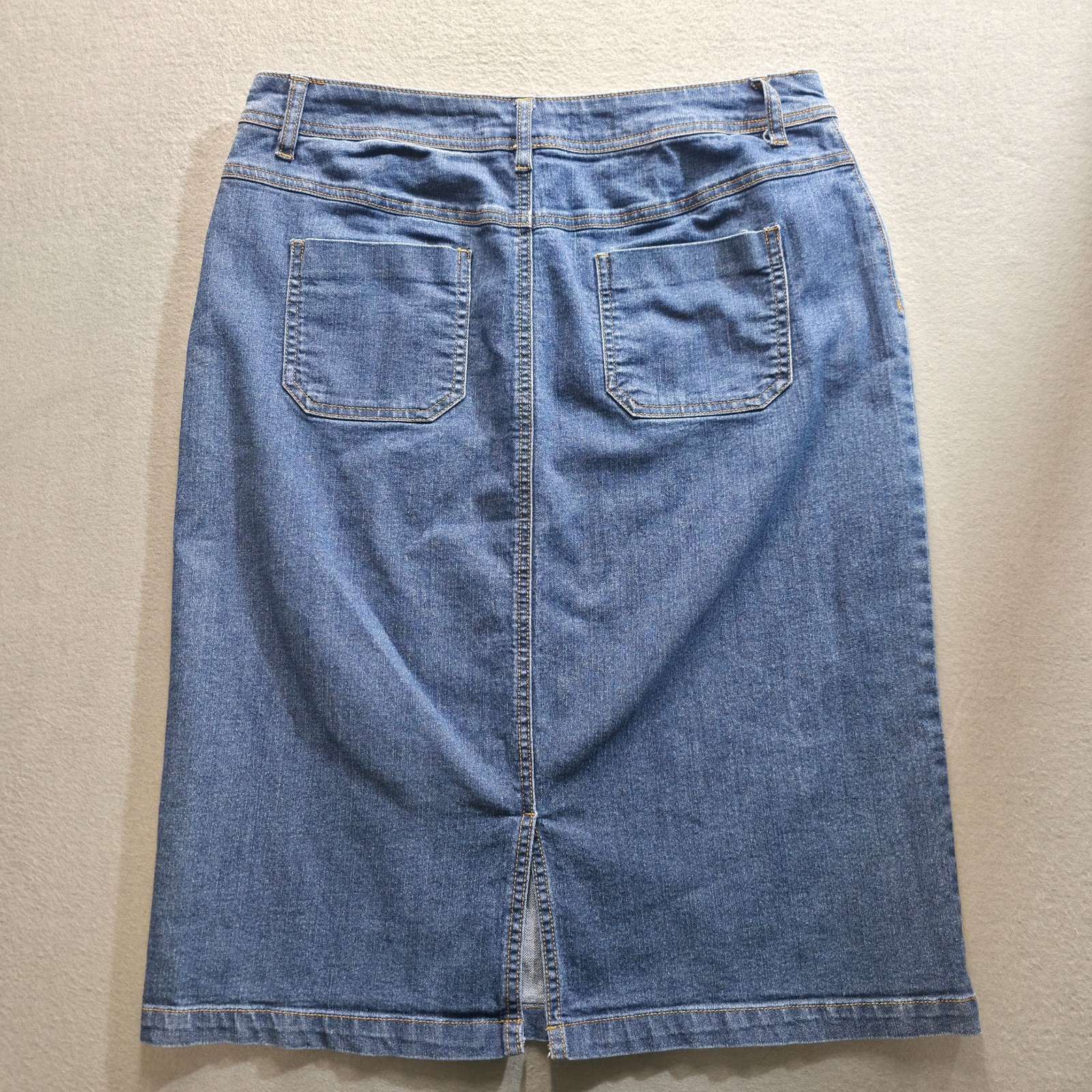 The Est. 1946 Denim Women's Blue Jean Skirt in size 14 is a stylish and versatile addition to any woman's wardrobe. Made from a blend of cotton, polyester, and spandex, this midi-length skirt features a classic solid pattern with button closures and pockets for added functionality. Perfect for casual wear, this skirt is machine washable and suitable for travel, parties, or everyday use. The blue denim fabric adds a timeless touch, making it a must-have for the summer, fall, and spring seasons.