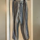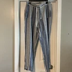 Elevate your casual wardrobe with these blue striped pull-on pants from Est. 1946. Crafted from a blend of linen and knit fabric, these pants are perfect for travel and everyday wear. The relaxed fit and elastic waist provide comfort, while the drawstring and pockets add convenience. Designed with a flat front and flared leg, these ankle pants are machine washable and suitable for summer, fall, and spring. With a size of X-Large, these pants are ideal for women who want to look fashionable and comfortable at the same time.