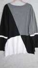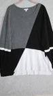 Est 1946 Sweater Women's 22/24 Black/White/Gray Colorblock Round Neck Long Sleeves Hi/Low Split Hem Lightweight Rayon/Polyester. Measures 27" Arm to Arm and 30'/33" From Shoulder to Hem. Shipped USPS Ground Advantage. Office, Casual, Colorful, Colorblock.