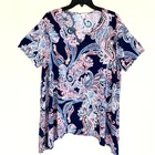 Est. 1946 Sz XL Blue Paisley Short Sleeve Tunic Blouse Silver Detail Very good condition See pictures for measurements and details
