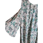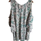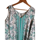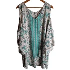 Est 1946 Turquoise & Black Paisley Blouse Womens 26-28 W Hi-Low Flowy Kimono Sleeve Cold Shoulder Bohemain Mesurements- Bust 30" Length 38"