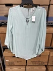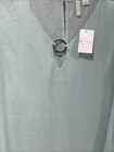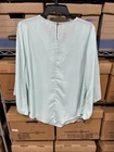 This Est. 1946 V-neck top is a perfect addition to your wardrobe. The top comes in a beautiful mint green color and is made of high-quality polyester material with a chiffon fabric type. It features 3/4 sheer sleeves and a pullover closure, making it perfect for workwear. The top is machine washable and has a regular fit, making it comfortable to wear. The blouse is a size Large and is suitable for all seasons, including Winter, Summer, Fall, and Spring. It has a solid pattern and is designed for women. The top is stretchy and flowy, providing a comfortable and stylish fit. Get this Est. 1946 V-neck top today and add a touch of elegance to your wardrobe.