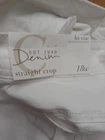 Smoke free home Elevate your denim game with these Est. 1946 Jeans in a classic white color. These hi-rise straight crop jeans are designed with a curvy fit and a comfortable 100% cotton fabric. The button closure adds a stylish accent to the solid pattern, and the denim fabric wash gives a light and fresh feel. These jeans are perfect for any season, whether you're going for a classic or trendy style. They're machine washable for easy care, and the 23" inseam makes them a great choice for showing off your favorite shoes. Get ready to turn heads in these timeless cropped jeans from Est. 1946 Jeans.