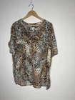 Est 1946 Womens 26/28W Short Sleeve Shirt Henley V Neck Cheetah Print Pockets Excellent preowned condition no stains or holes. Measurements in photos Please see all pictures for condition details