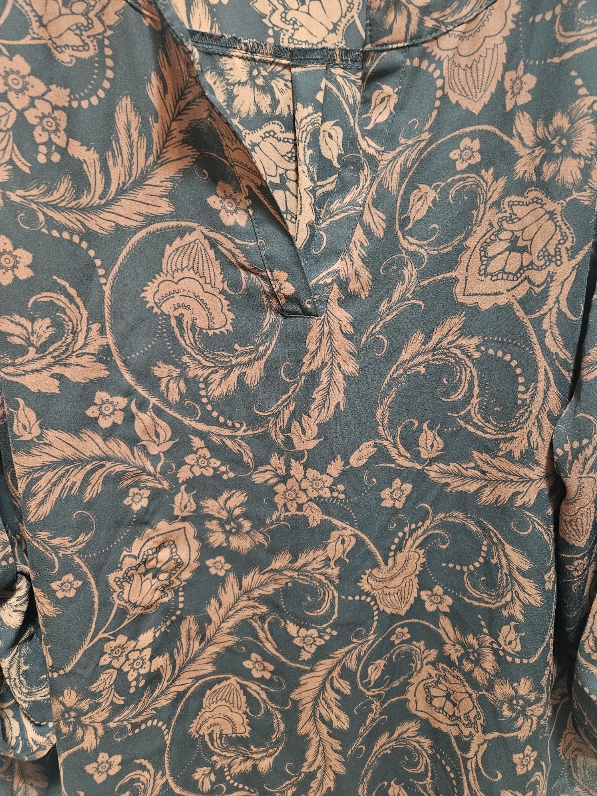 CONDITION: Excellent Pre-Loved SIZE: Large FEATURES: V-neck, 3/4 roll tab sleeves, all over print STYLE: Career, business, office, silent luxury, classy, Autum, botanical, floral, bloom, nature, professional, work, school, elegant FLAWS: Deodorant spotting under armpit* (See pictures for details) MATERIAL: 100% polyester (See tag pictures for details) MEASUREMENTS: Approximated In Inches (Refer to measurements in pictures for details) NOTE: MOST ITEMS ARE PRE-LOVED TINY FLAWS MAY BE PRESENT. ALWAYS WASH BEFORE WEAR. ~ Fast Shipping ~ ~ Daizy's Resale Closet ~ ~ New is CRAZY Shop DAIZY ~ 784