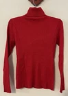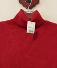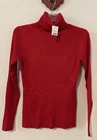 Elevate your wardrobe with this stunning red ribbed knit sweater blouse from Est 1946. This classic and chic piece features a cable-knit pattern, long sleeves, and a comfortable turtleneck neckline. The lightweight and breathable fabric is made from a blend of nylon and rayon, making it perfect for all seasons. The pullover style sweater is designed for women in size M and comes with tags attached. It is perfect for both casual and city-themed occasions. The knit style sweater is not only stretchy but also comes in a solid red color that can be paired with various outfits. Make a statement and upgrade your wardrobe with this timeless piece from Est 1946. Length: 23 inches. Bust: 30 inches.