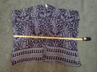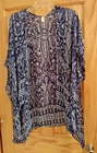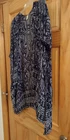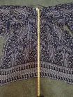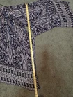 Est 1946 Women's Sheer Floral Open Front Cardigan Drape Vest Blue Floral One Size (READ) RN37080 This is a sheer open front vest / cardigan in a beautiful dark blue floral paisley pattern with sequins sprinkled on the fabric. It is split on each side under the armhole down to the end. The approximate measurements are as follows: 30" from the neckline to the waist 35" on sides from the shoulder to the hem 19" from the armhole to the hem 30" wide from armhole to armhole Please see the above measurements before you order. I do not accept returns. This item has been washed and cleaned per the care instructions.