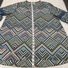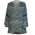 Est. 1946 Womens V Neck Tunic Blouse Size 14/16W 3/4 Bell Sleeve Geometric Boho Great pre-owned condition, no holes or stains, missing material/care tag (Feels to be polyester) Style Profile: casual, career, boho, artsy Features: * Popover closure * V Neckline * 3/4 bell sleeves with crochet accents * Hi-low hemline, with layered front * Pleated upper back Size: 14/16W Shoulders: 16-1/2 in Bust: 46 in Waist: 50 in Sleeve: 19 in Length: 27 in (front) 29 in (back) Material/Care tag missing *Feels to be polyester Machine wash gentle cold/hang dry One business day handling time Smoke-free home Thanks for looking!