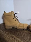 Est. 1946 lace-up combat boots in a tan or camel brown color Size 11 Women's. Style Details: The boots feature a round toe, speed lacing eyelets, and a durable rubber lug outsole. The padded collar at the ankle adds comfort and support, a common design element in work and tactical boots. Color: The color is a classic tan or "wheat" nubuck leather, a popular shade for this style of footwear. Boots are used but in overall good condition. Has plenty of life left. If you have any questions feel free to ask.