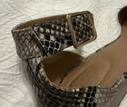 Antelope Spiral Cut Mauve Gray Leather Wood Block Arc Heel Sandals Size 6.5
