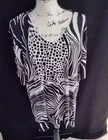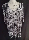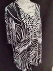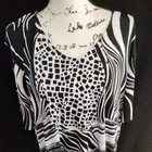 est 1949 Womens Black and White Geometric Print Open Metal Ring Sleeve Sz 22/24. Measures 28" underarm to underarm From top shoulder to bottom hem 32" Buyer to pay shipping Thanks for looking