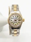 Item Description: Estate ROLEX Datejust Ladies Watch. Solid 18k Yellow Gold and Stainless Steel...mesmerizing piece and rare find. 6.6 inches long and just serviced and runs and keeps time. 26mm CASE and all ORIGINAL FACTORY ROLEX with only a CUSTOM DIAL in White MOTHER PEARL and Natural Emeralds and Diamonds. Just stunning and so pretty. Great two tone watch and rare Rolex find. This dial is so pretty and mesmerizing. Retail $10,000...GORGEOUS. Brand: Rolex Metal: Stainless Steel and 18k Yellow Gold Movement: AUTOMATIC - Just serviced and runs and keeps time with a 1 year warranty Gram Weight: 43.1g Powered by SixBit's eCommerce Solution