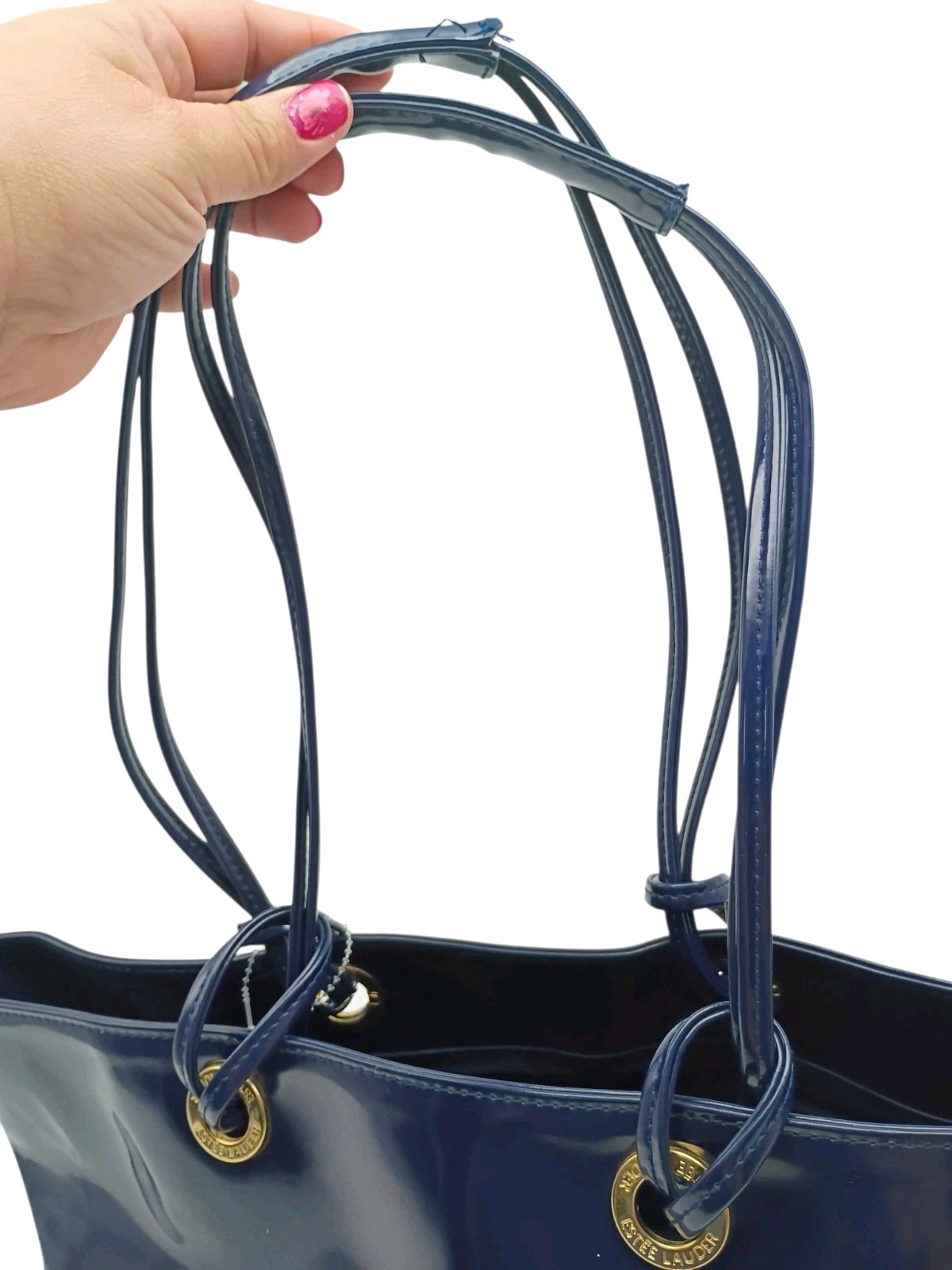 Estee Lauder Oversized Canvas Travel Tote Bag Navy Estée Logo Pockets Open Preowned Excellent Condition