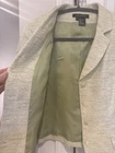 Etcetera women’s jacket, size 4. Beige tweed, lightweight and stylish. Regular fit with button closure, front pockets, acetate lining. 3/4 sleeves with fringe detail for an elegant touch. Perfect for business, casual, or travel wear. Suitable for spring, fall, winter, and summer. Dry clean only.