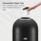Ideal for High-Traffic Areas: With a generous 15-gallon/56-liter capacity and an open-top design, this sleek and sturdy steel trash can is perfect for both indoor and outdoor commercial spaces, including homes, coffee shops, hotel lobbies, and restaurants. Convenient Wide Open Top: Dispose of garbage without touching the can. The dome shaped open top makes disposal easy while concealing trash away from view. Built to Last: This commercial garbage can is made of thick, heavy-gauge powder-coated steel, which gives it remarkable resilience to wear and tear over time. Classic Silhouette: Featuring a sophisticated, timeless design and a versatile dome-shaped open top, this commercial garbage can adds a touch of style to any setting. Effortless Lift-Off: Outer shell easily removes to access the metal inner liner for quick bag changes while keeping excess trash bag and garbage out of sight. Easy Cleaning: The commercial trash can features an anti-fingerprint, smudge-proof finish, making it incredibly easy to maintain. Simply wipe it with a damp cloth to keep it looking pristine.