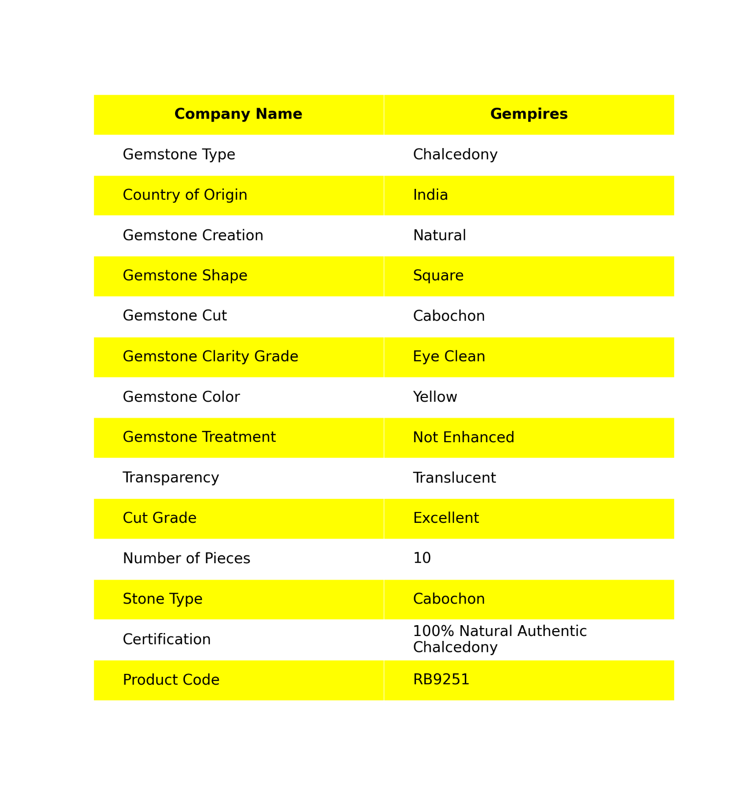Welcome To Gempires This is a set of 10 square-shaped Chalcedony gemstones with excellent cut grade and translucent yellow color. The gemstones are 100% natural authentic Chalcedony, not treated or enhanced, with eye-clean clarity. They are polished and come from India, where they were also manufactured. This handmade wholesale set is perfect for creating unique jewelry pieces or incorporating into various designs for a vibrant touch of color and elegance. Natural Cabochon Chalcedony Loose Ethical Gemstone India 10 Pcs Wholesale Lot Check My Other Chalcedony Listings : Click Here Note: For Custom / Bulk Order, Please contact on Ebay Message Service. QUALITY ASSURANCE:- The photo may not give you the actual size, please refer to the item description for size details. Our product Images are original. We dont use Photoshop for any editing. We always do our best to display an actual image of the gemstone which is to be delivered to our customers. We check all our items and ensure the best quality standards. The item weight may vary 5% (+/-) at maximum and size may vary .10 cents (+/-) as per the gemstone standard. Return Policy:- Any reason, if you are not satisfied with our product, you may return item within 14 days from the date of product delivered. The Item must be returned in its original condition. Return shipping will be paid by buyer. Shipping Policy: At Gempires, we offer two shipping options for our customers: Standard Shipping: 13-15 Days Express Shipping: 5-7 Days Standard Shipping: Our standard shipping option takes approximately 13-15 days for delivery. Please note that this is an estimated time frame and may vary depending on your location and any unforeseen circumstances. We strive to ensure that your order is processed and shipped as quickly as possible. Express Shipping: If you need your order delivered quickly, we offer an express shipping option that takes approximately 5-7 days for delivery. This option is available at an additional cost, which will be displayed during the checkout process. Please note that this time frame is an estimated delivery time and may vary depending on your location and any unforeseen circumstances. Handling Time All orders are processed and shipped within 1-2 business days after payment has been received. Once your order has been shipped, you will receive a tracking number via Ebay notifications, which you can use to track your package. Custom Duty Note Please note that we are not responsible for any customs or import duties that may be charged once the package reaches your country. These charges are the responsibility of the buyer and are not included in our shipping fees. We take great care in packaging our products to ensure that they arrive at your doorstep in pristine condition. However, if your package arrives damaged or you have any other concerns about your order, please don't hesitate to contact us. We will do our best to resolve any issues and ensure that you are satisfied with your purchase. Feedback Policy:- At Gempires, we value your feedback and strive to provide the best customer experience possible. We welcome your reviews and appreciate your time in sharing your thoughts about your purchase with us. If you are satisfied with your purchase and our service, we would love to hear about it. Your positive feedback can help other buyers make an informed decision about our products and services. If for any reason you are not completely satisfied with your purchase or our service, please reach out to us before leaving a negative review. We are committed to resolving any issues that may arise and ensuring your satisfaction. Thank you for choosing Gempires for your natural gemstone needs. Your feedback is valuable to us, and we look forward to providing you with exceptional service in the future. Best Regards Gempires
